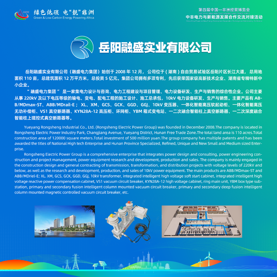 岳陽融盛攜“一二次深度融合智能柱上磁控式真空斷路器”亮相中非電力與新能源發(fā)展合作交流對接活動